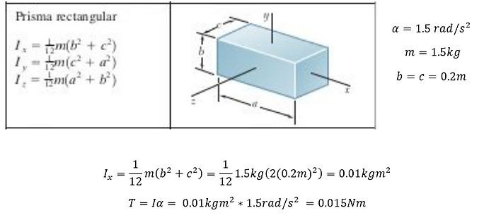 Para el torque del segundo motor se usa el momento de inercia de la figura y la aceleración angular a la que queremos que gire.